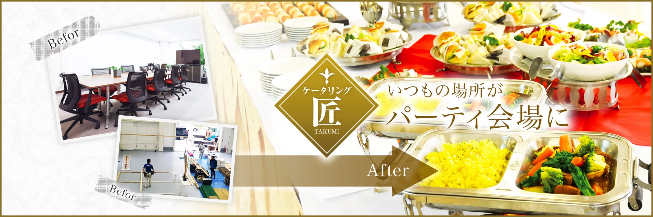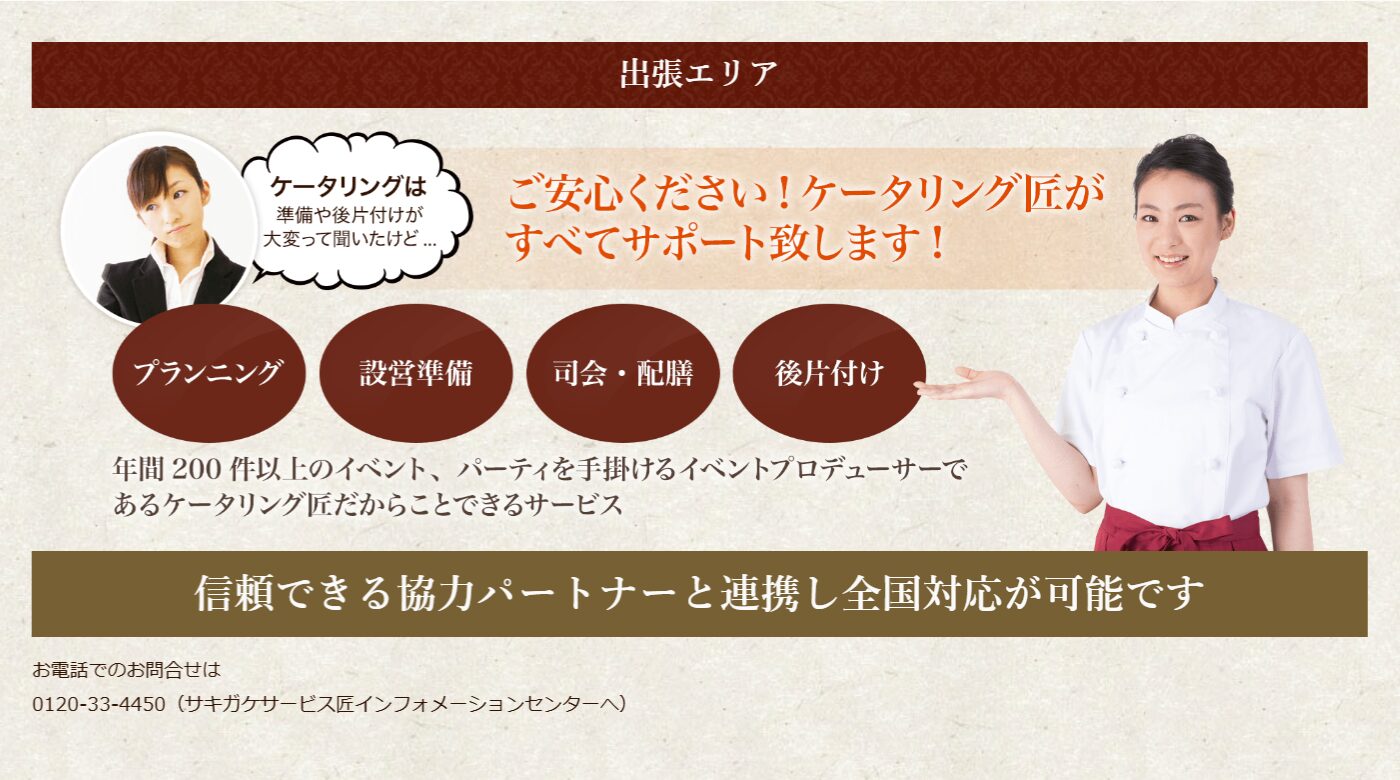 お客様の指定する会場に出向いて食事を配膳、提供するサービスのことを言います。