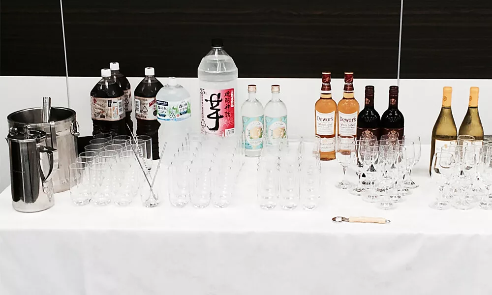 ドリンクは「フリードリンク制」「出来高清算制」からお選びいただけます。お飲み物種類、銘柄につきましてはご要望に対応させていただきます。