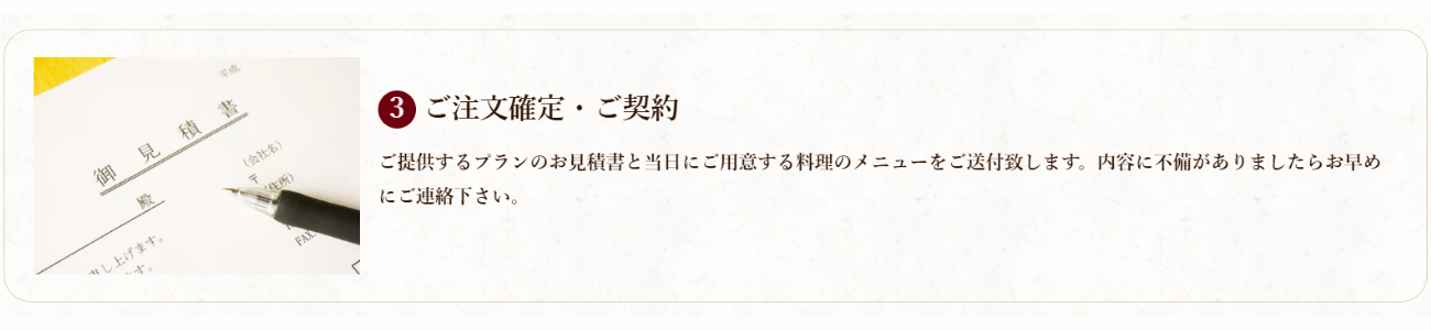ご依頼の都度お客様だけのメニュー提案をさせていただきます。